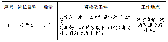 根據(jù)敘古敘威公司一線運營管理工作需要,擬面向蜀道集團系統(tǒng)開展收費崗位內(nèi)部選聘工作。現(xiàn)將相關(guān)事宜公告如下: